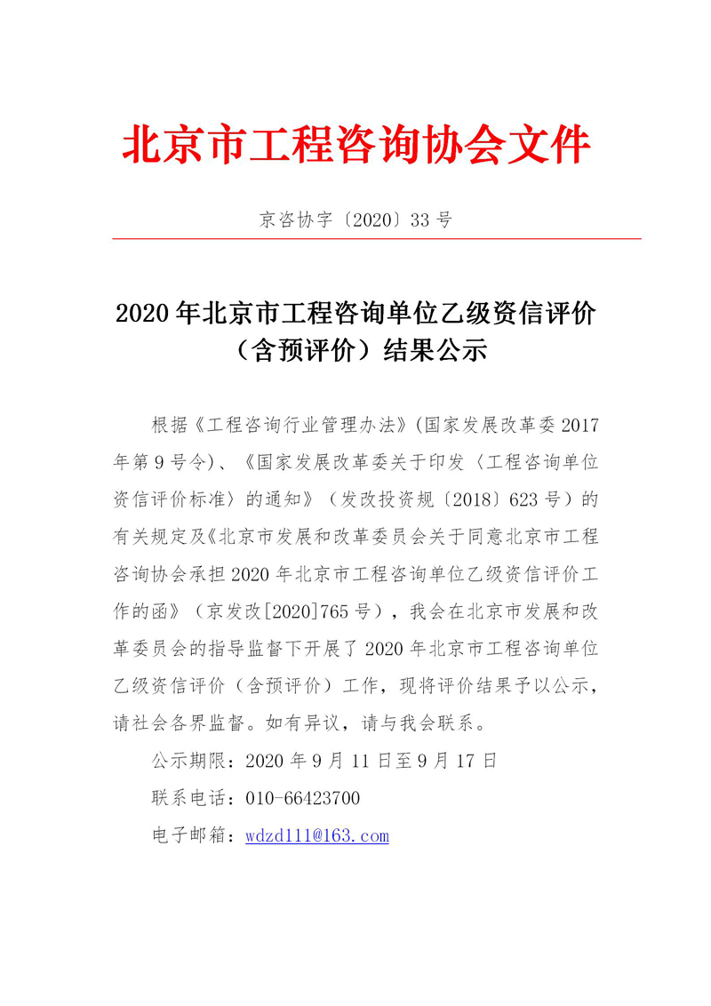 附件:2020年北京市符合乙级资信评价(含预评价)标准的工程咨询单位名单